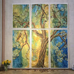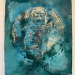 Malen ist mir eine Herzensangelegenheit, „a love affair“ mit Farben und Pinseln. Ich male auf dem Boden, knieend vor dem ausgebreiteten handgeschöpftem Papier oder auch der Leinwand mit viel Wasser, Schwamm, Sprühflasche in vielen Schichten. Häufig entstehen meine Arbeiten in der Natur, unter einem Baum oder vor einer Blüte, im Garten in der Lüneburger Heide, im Wald, im italienischen Umbrien, an vielen Plätzen. Unter der heißen Sonne, im Wind. Immer wieder zieht es mich zu den gegenständlichen Motiven, Bäumen, Blättern, Kranichen, Schwänen und Schmetterlingen. Vielleicht auch, weil sich in meinen Augen etwas von dem Wesen einer Pflanze oder eines Tieres (oder eines Menschen, aber die male ich kaum) in seiner Gestalt offenbart. Indem ich diese Gestalt malerisch zu erfassen suche, verbindet sich etwas in mir mit dem Wesen des Gegenübers, Maler und Gegenstand werden in Momenten eins.