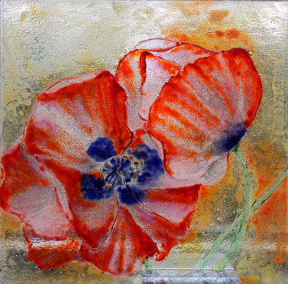 Weitere Möglichkeiten der Präsentation der Glasarbeiten sind Aufsteller aus Acrylglas zum Beispiel auf dem Boden, der Fensterbank oder einem Raumteiler.