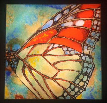 Als Leuchtbild wird die Glasarbeit mit einer weißen Holzblende umfasst und durch dimmbare LED-Lichtketten hinter der Scheibe beleuchtet. Die Wirkung ist erstaunlich: An der Wand erscheint ein buntes Lichtfenster und strahlt in den Raum. Auch hier kann individuell die Größe und Thematik der Glasarbeit bestellt werden.